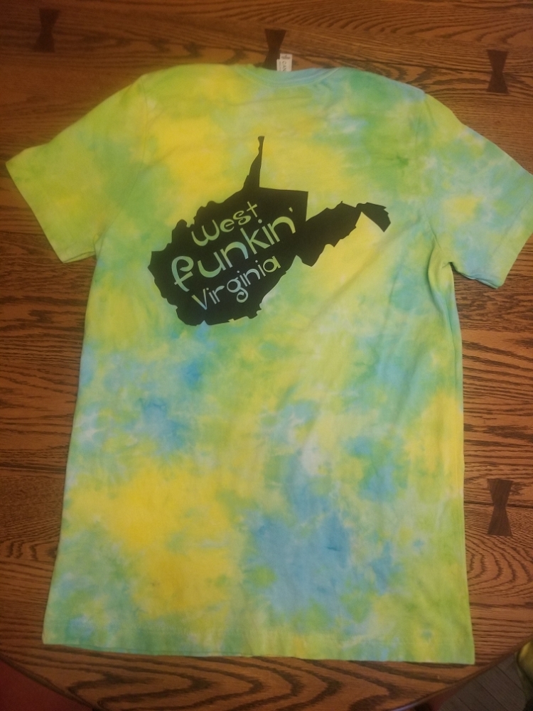 Tie Dye T Shirt - West Funkin Virginia (Please note that due to the nature of hand dying t shirts shirt colors will vary and may not look exactly as pictured)